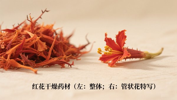 区分红花与藏红花:二者名称相似,但来源(红花为菊科,藏红花为鸢尾科)、功效(藏红花活血力更强,还能凉血解毒)、价格(藏红花价格是红花的数十倍)差异极大,切勿混淆使用,避免因误用导致疗效不佳或费用浪费。